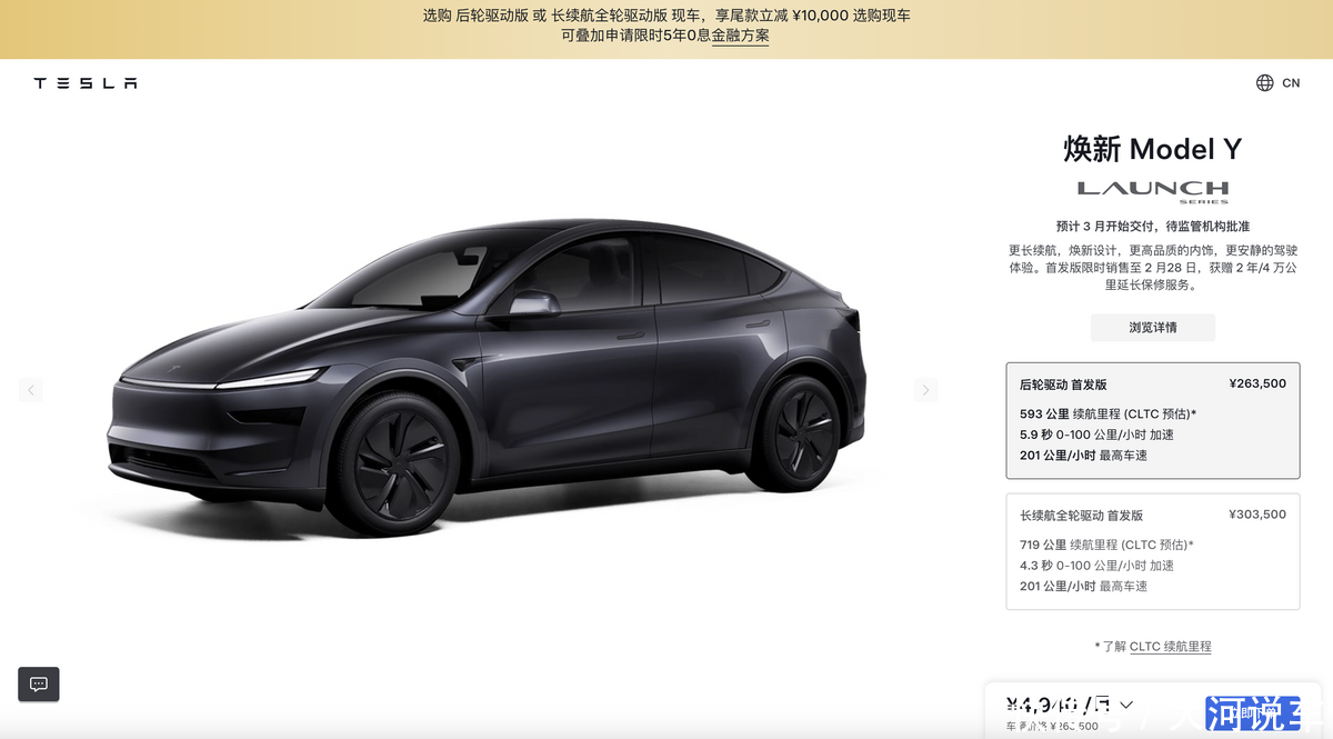 1月10日,焕新Model Y正式登录特斯拉中国官网,同时上线首发版车型,预售价26.35万元起,在外观、座舱、续航等方面均迎来升级,安全、智能等硬核产品实力进一步提升,使这款全球最畅销的“六边形战士”完成了全面进化,成为兼顾驾驶乐趣与乘坐舒适性的最佳选择,也将蝉联这个时代最畅销的产品。