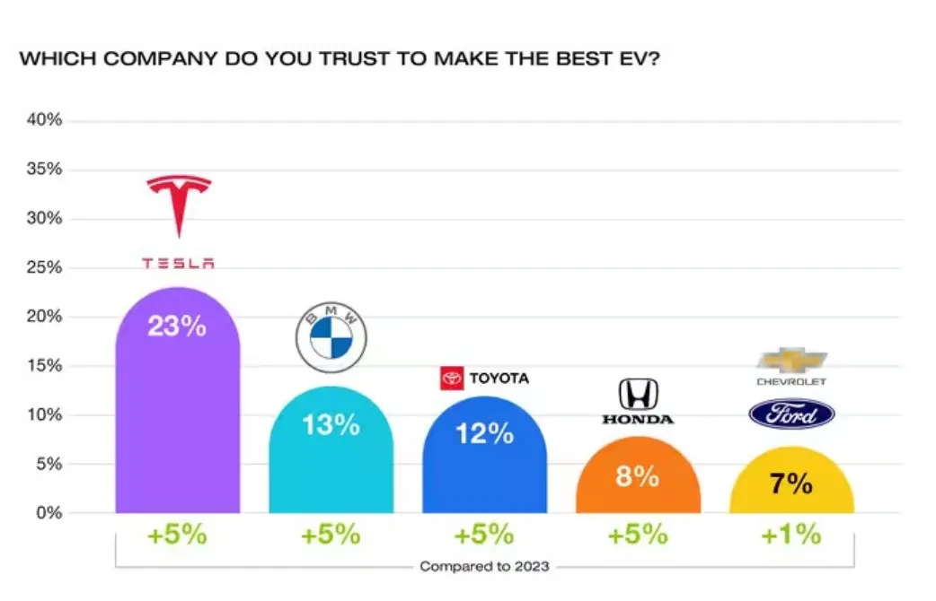 美国在线汽车信息资源公司Edmunds公布了“最受消费者信任的电动车品牌”榜单,特斯拉凭借靠谱稳定的车辆质量,成为消费者心目中最值得信赖的电动车制造商,超越宝马、丰田等一众传统热销燃油车品牌。